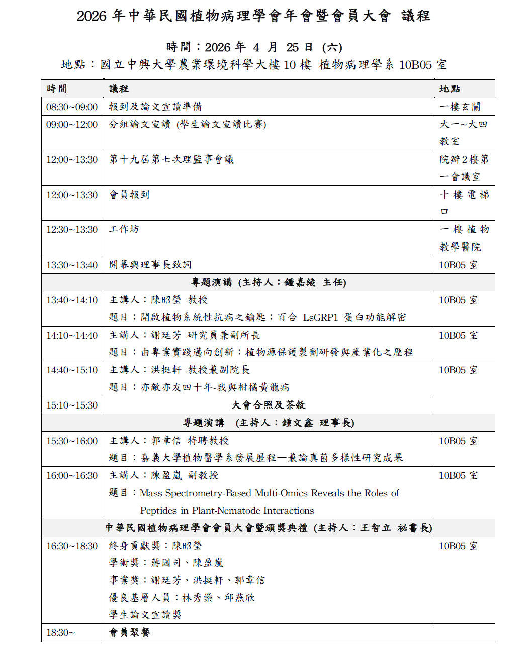 2026 年植病年會